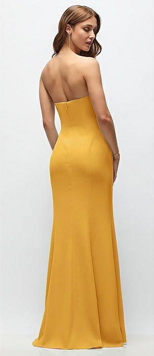 Strapless Scoop Back Maxi Dress with Front Slit in NYC yellow