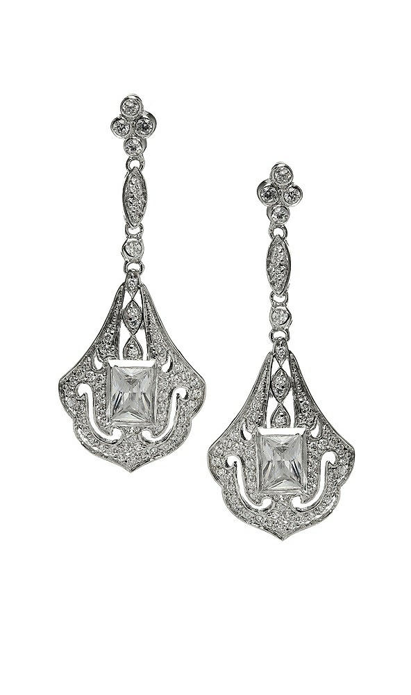 Vintage-inspired cubic zirconia Art Deco chandelier earrings are perfect for the bride looking for a 20's glamour vibe.
