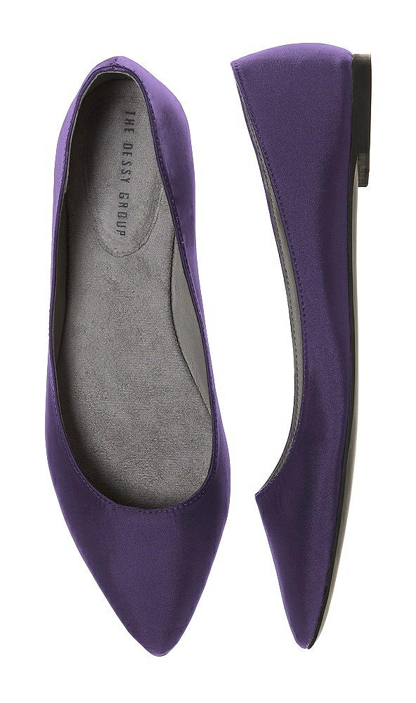 Dessy's limited edition Chelsea satin ballet flat in bridesmaid colors. This modern pointed toe shoe is the perfect accent for a bridal party, a night out with the girls or for a dressy event.