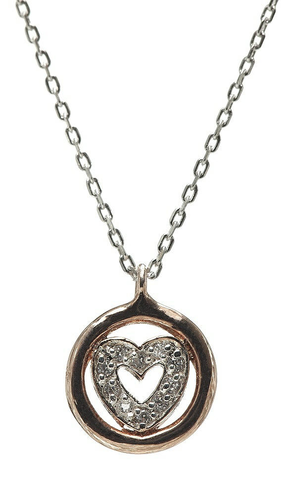 Cubic zirconia pave heart pendant necklace encircled by a gold-plated accent with a sterling silver chain.