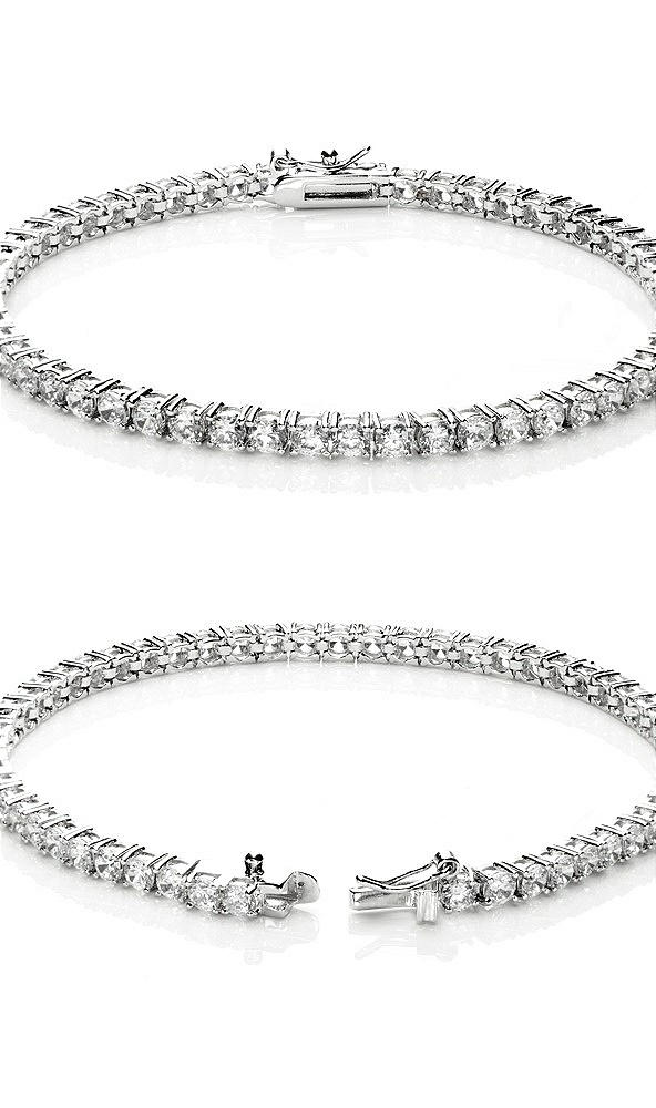 This dazzling tennis bracelet features sparkling cubic zirconia crystals set in silver-toned metal.