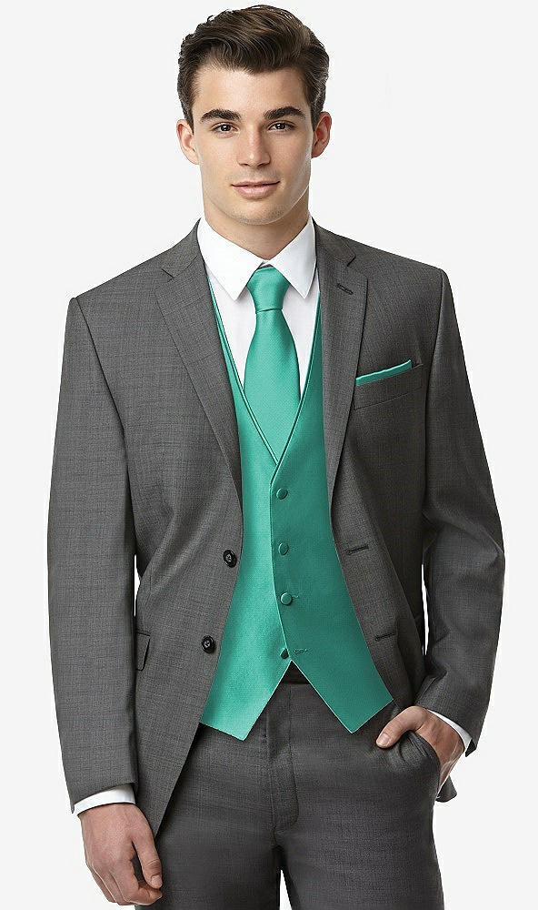 Classic Yarn-Dyed Tuxedo Vest by After Six in Pantone Turquoise