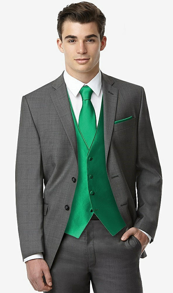 Classic Yarn-Dyed Tuxedo Vest by After Six in Pantone Emerald
