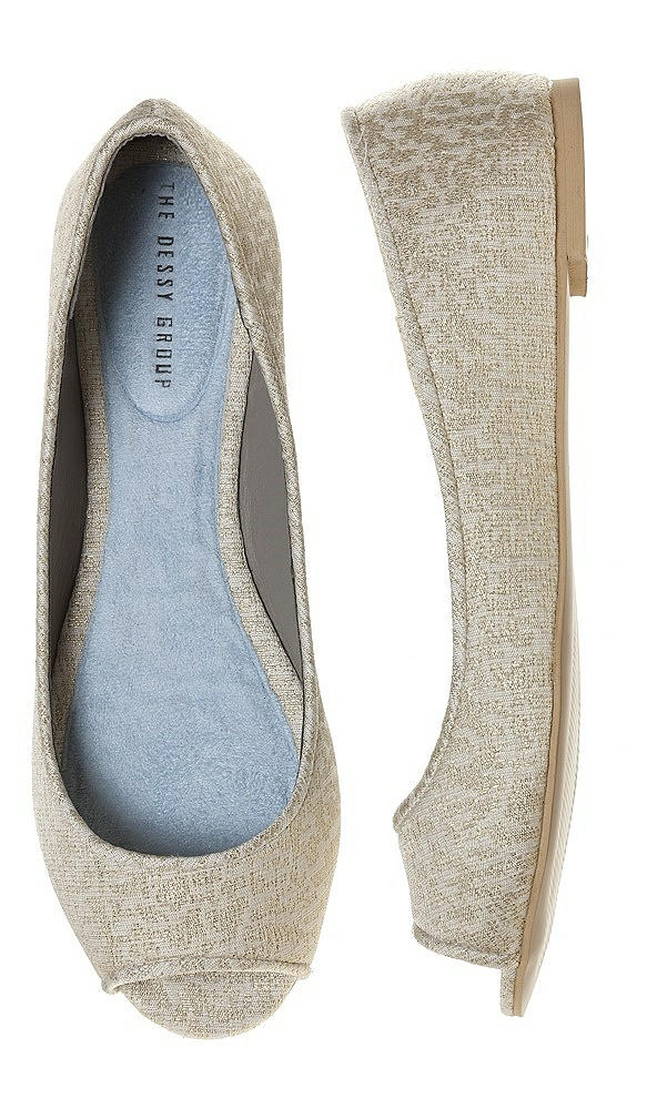 Our Park Avenue brocade open toe ballet flat is an understated and elegant choice for any bride. The ivory brocade is accented with soft metallic gold.
