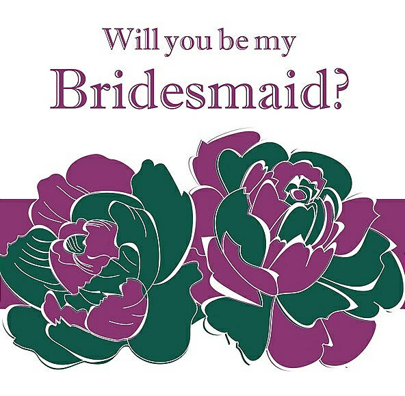 Will You Be My Bridesmaid Card - 2 Color Flowers in Hunter Green & Persian Plum