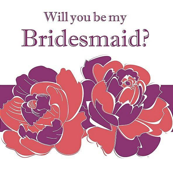 Will You Be My Bridesmaid Card - 2 Color Flowers in Perfect Coral & Persian Plum