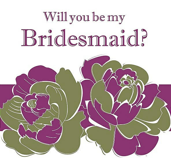 Will You Be My Bridesmaid Card - 2 Color Flowers in Olive & Persian Plum