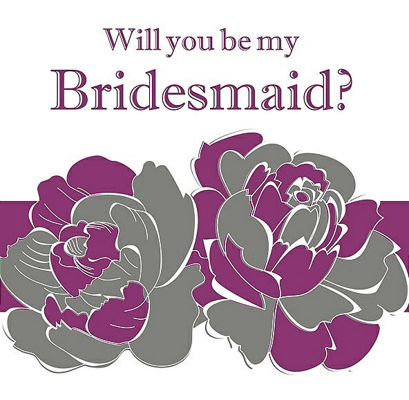 Will You Be My Bridesmaid Card - 2 Color Flowers in Charcoal Gray & Persian Plum
