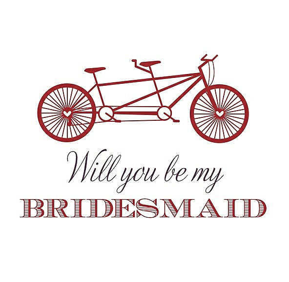 Will You Be My Bridesmaid Card - Bike in Ribbon Red & Aubergine