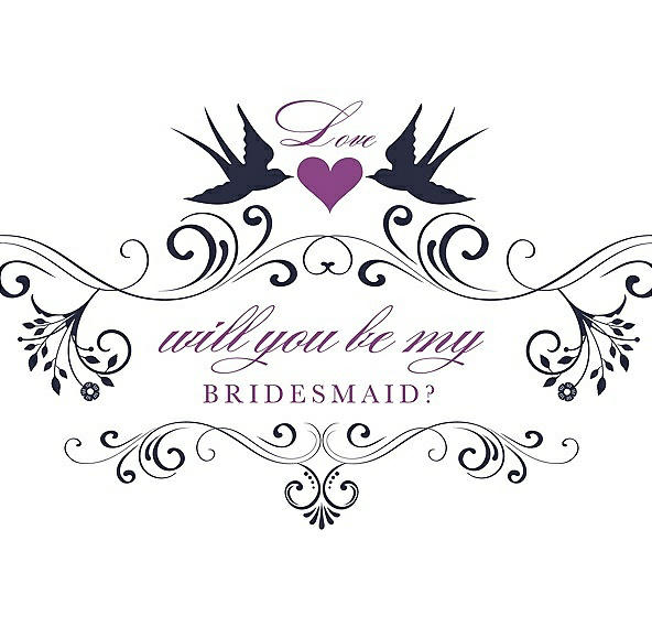 Will You Be My Bridesmaid Card - Classic in Navy Blue & Orchid