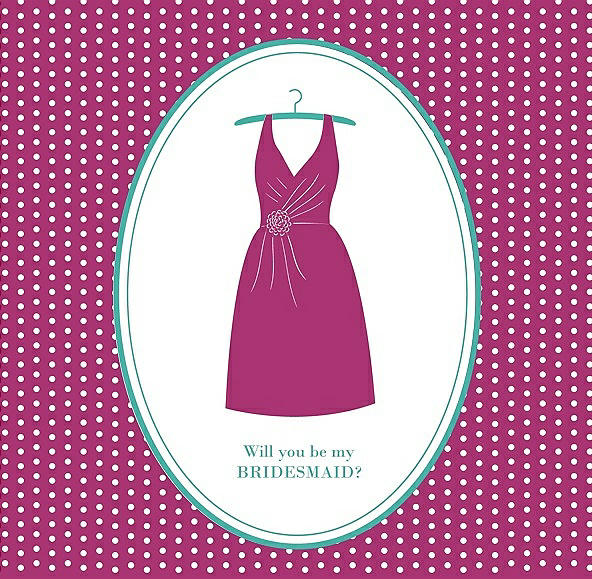 Will You Be My Bridesmaid Card - Dress in Cerise & Pantone Turquoise