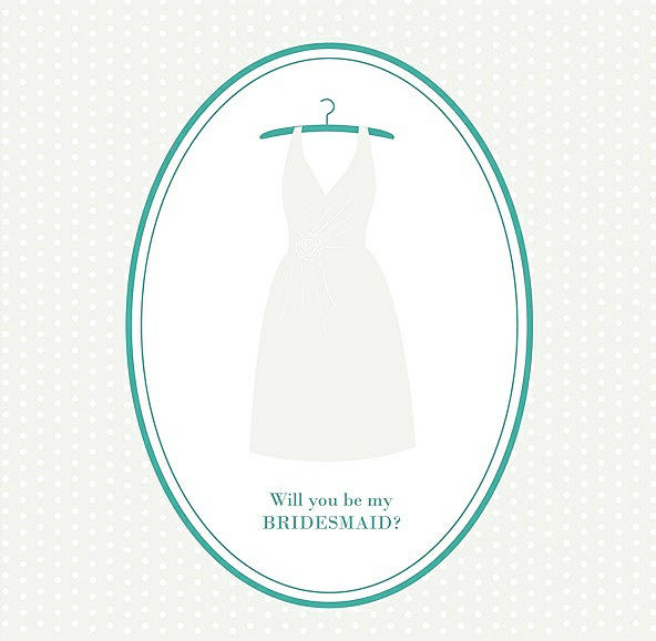 Will You Be My Bridesmaid Card - Dress in White & Pantone Turquoise