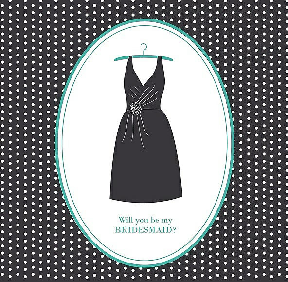 Will You Be My Bridesmaid Card - Dress in Black & Pantone Turquoise