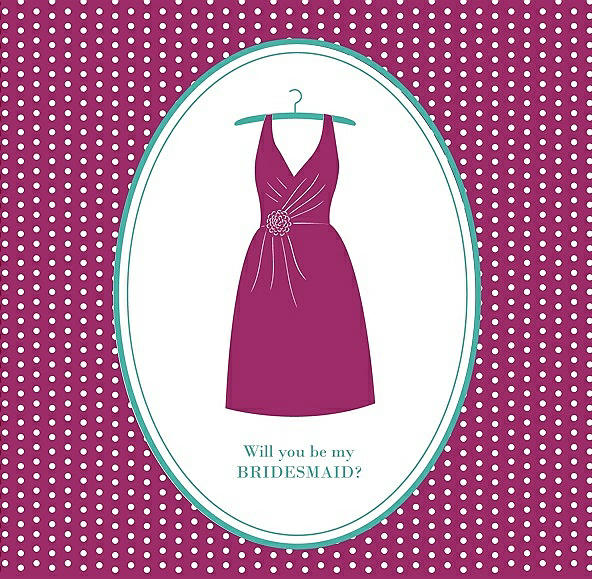 Will You Be My Bridesmaid Card - Dress in Merlot & Pantone Turquoise