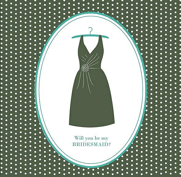 Will You Be My Bridesmaid Card - Dress in Moss & Pantone Turquoise