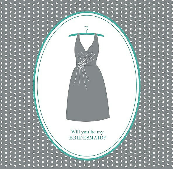 Will You Be My Bridesmaid Card - Dress in Pewter & Pantone Turquoise