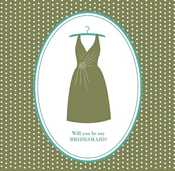 Will You Be My Bridesmaid Card - Dress in Olive & Pantone Turquoise