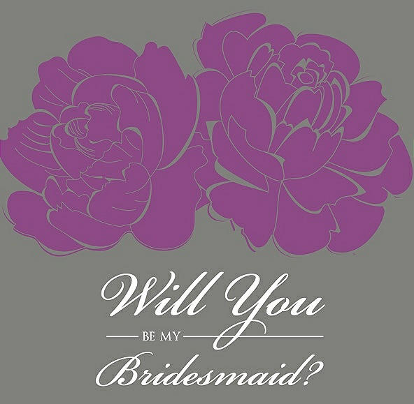 Will You Be My Bridesmaid Card - Flowers in Dahlia & Charcoal Gray