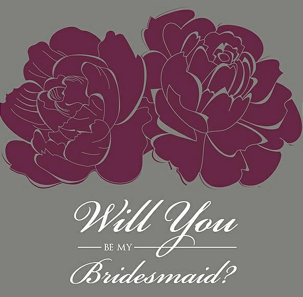 Will You Be My Bridesmaid Card - Flowers in Ruby & Charcoal Gray