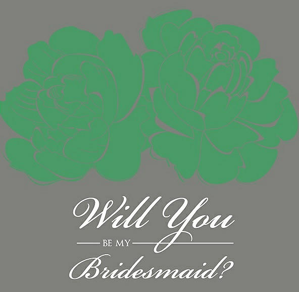 Will You Be My Bridesmaid Card - Flowers in Juniper & Charcoal Gray