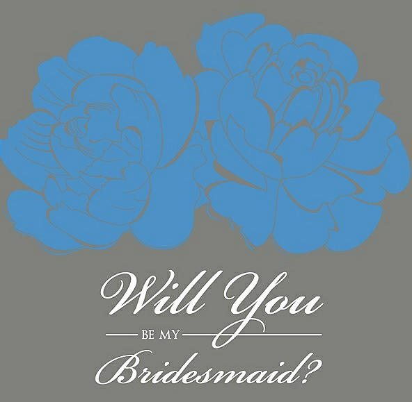 Will You Be My Bridesmaid Card - Flowers in Cornflower & Charcoal Gray