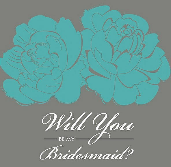Will You Be My Bridesmaid Card - Flowers in Capri & Charcoal Gray