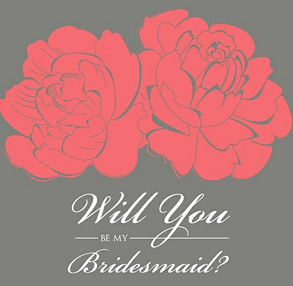 Will You Be My Bridesmaid Card - Flowers in Coral & Charcoal Gray