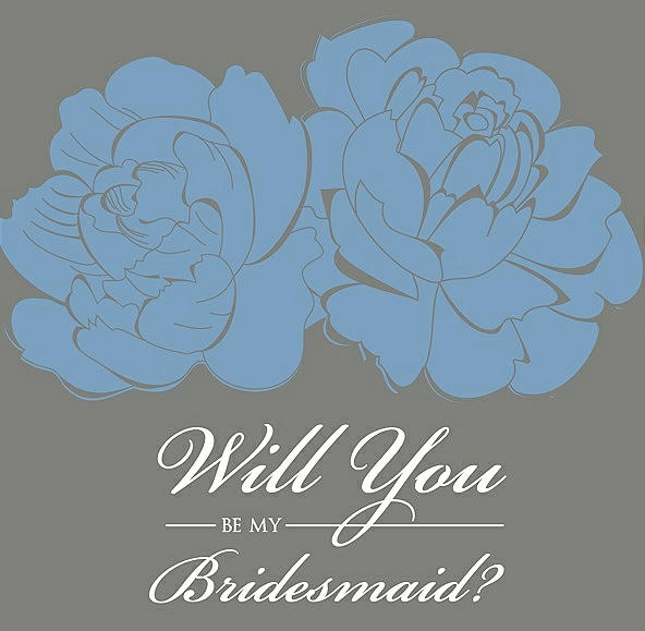 Will You Be My Bridesmaid Card - Flowers in Windsor Blue & Charcoal Gray