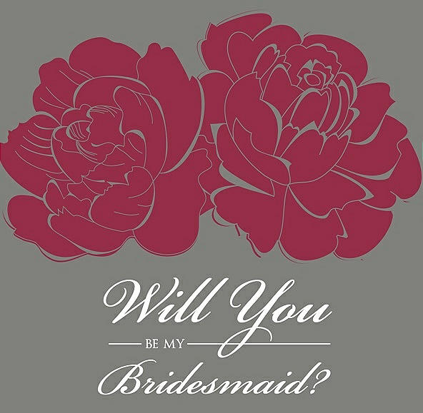 Will You Be My Bridesmaid Card - Flowers in Valentine & Charcoal Gray