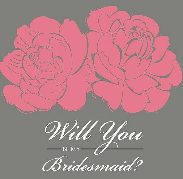 Will You Be My Bridesmaid Card - Flowers in Nectar & Charcoal Gray