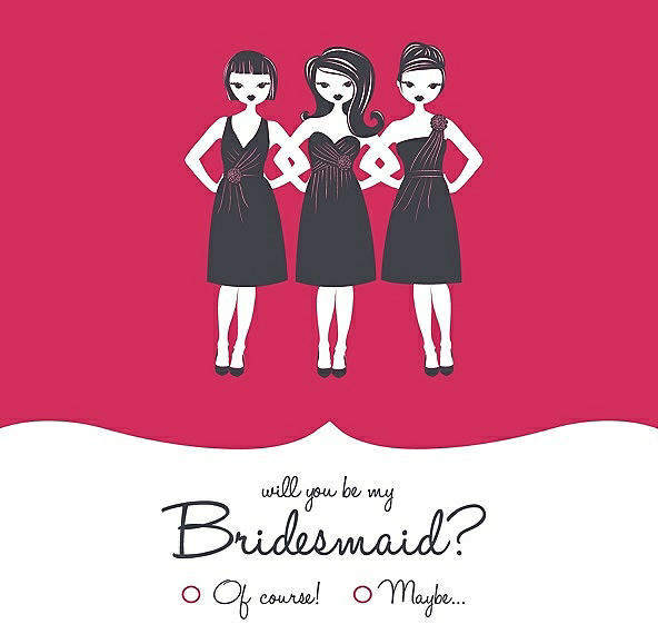 Will You Be My Bridesmaid Card - Girls Checkbox in Pantone Honeysuckle & Ebony