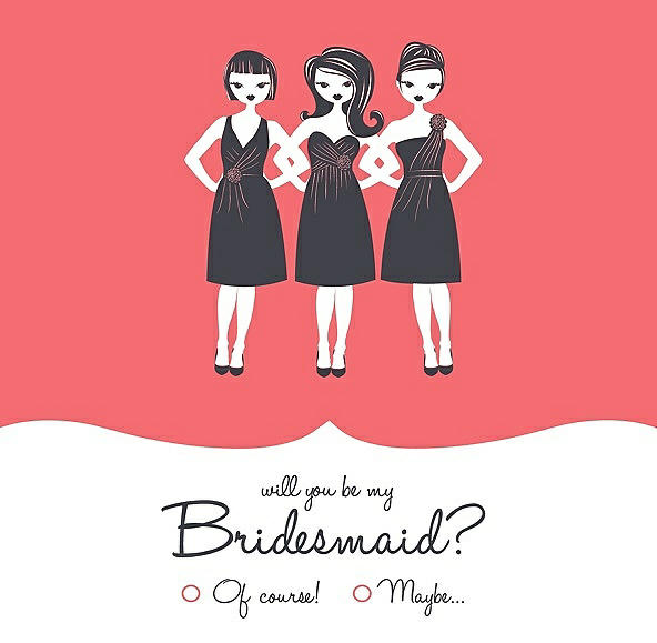 Will You Be My Bridesmaid Card - Girls Checkbox in Coral & Ebony