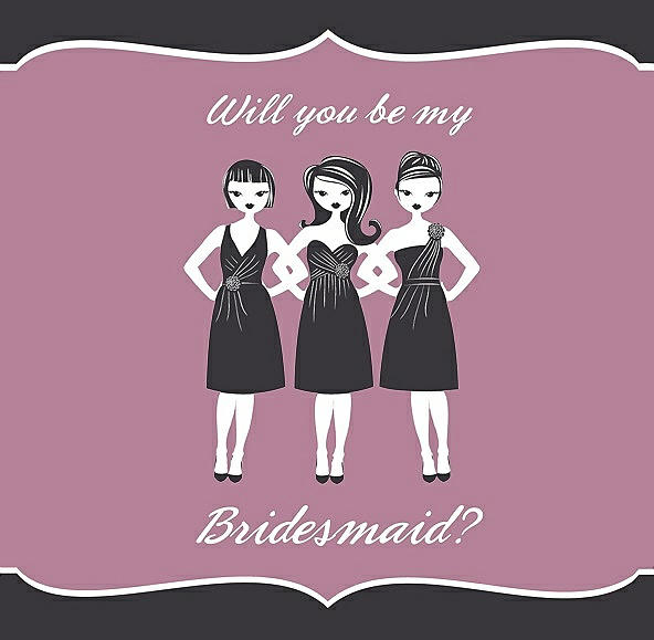Will You Be My Bridesmaid Card - Girls in Black & Rosebud