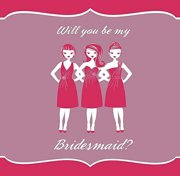 Will You Be My Bridesmaid Card - Girls in Pantone Honeysuckle & Rosebud