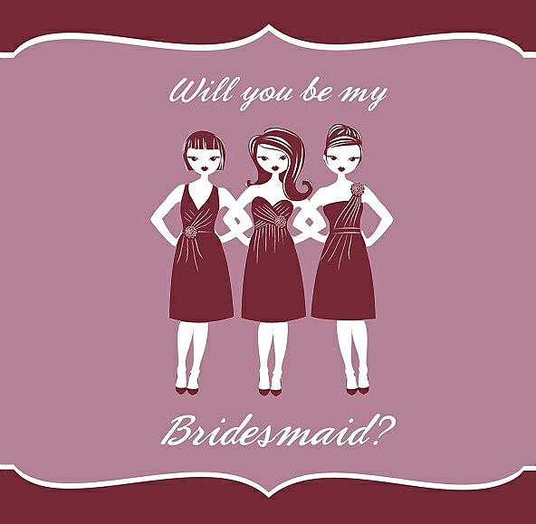 Will You Be My Bridesmaid Card - Girls in Burgundy & Rosebud