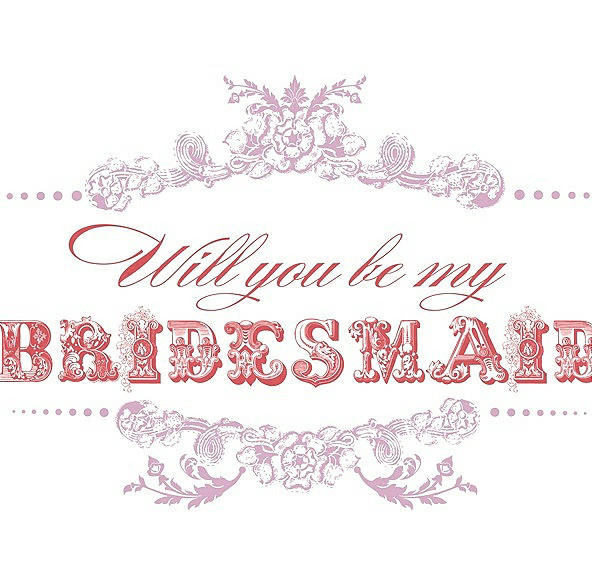Will You Be My Bridesmaid Card - Vintage in Hyacinth (iridescent Taffeta) & Perfect Coral