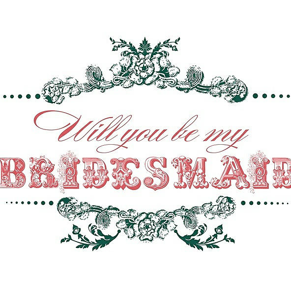 Will You Be My Bridesmaid Card - Vintage in Hunter Green & Perfect Coral