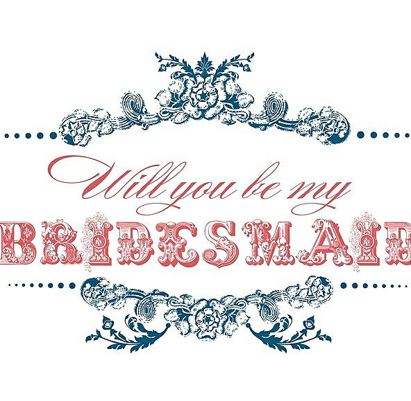 Will You Be My Bridesmaid Card - Vintage in Ocean Blue & Perfect Coral