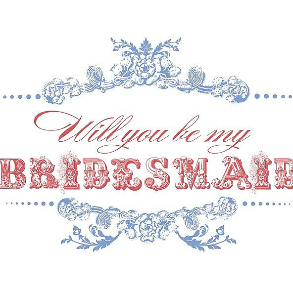 Will You Be My Bridesmaid Card - Vintage in Periwinkle - PANTONE Serenity & Perfect Coral