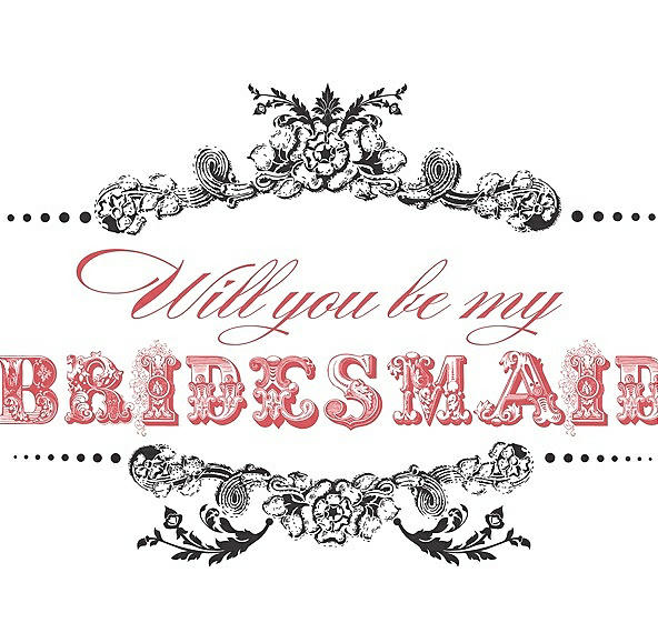 Will You Be My Bridesmaid Card - Vintage in Graphite & Perfect Coral