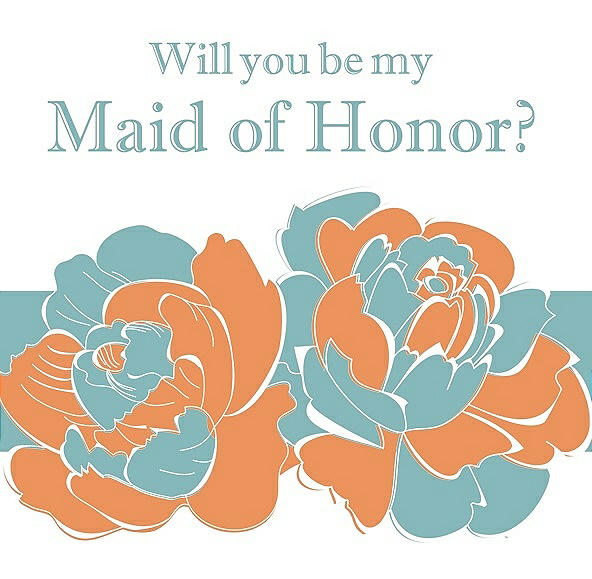 Will You Be My Maid of Honor Card - 2 Color Flowers in Clementine & Seaside