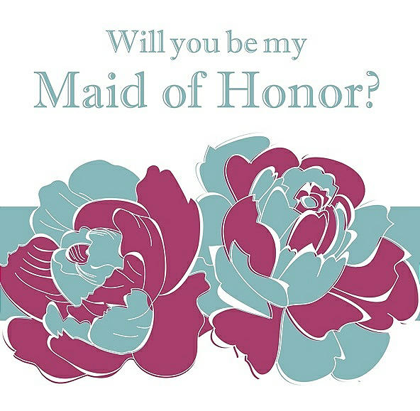 Will You Be My Maid of Honor Card - 2 Color Flowers in Fruit Punch & Seaside