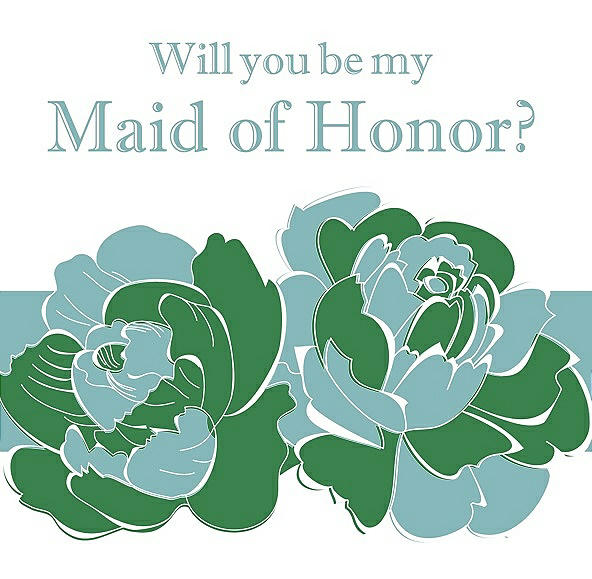 Will You Be My Maid of Honor Card - 2 Color Flowers in Ivy & Seaside