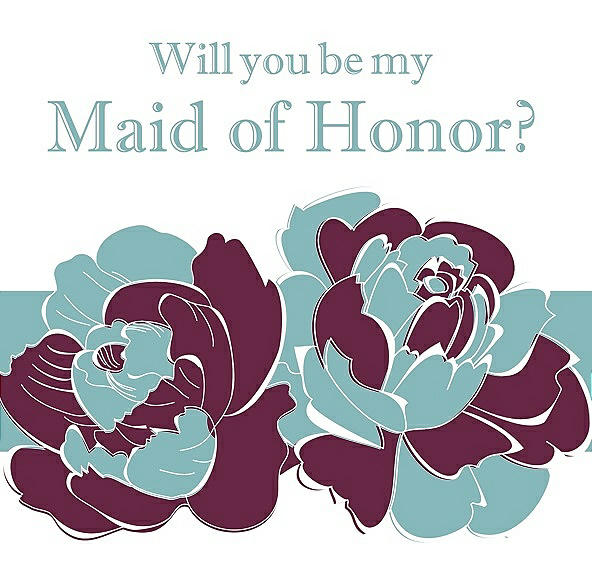 Will You Be My Maid of Honor Card - 2 Color Flowers in Ruby & Seaside