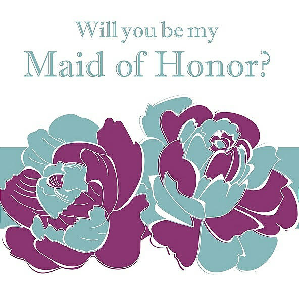 Will You Be My Maid of Honor Card - 2 Color Flowers in Persian Plum & Seaside