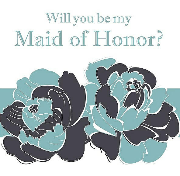 Will You Be My Maid of Honor Card - 2 Color Flowers in Stormy & Seaside