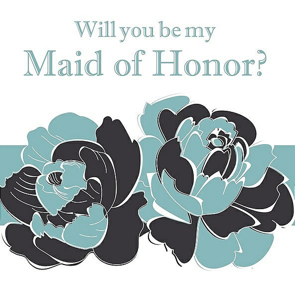 Will You Be My Maid of Honor Card - 2 Color Flowers in Black & Seaside