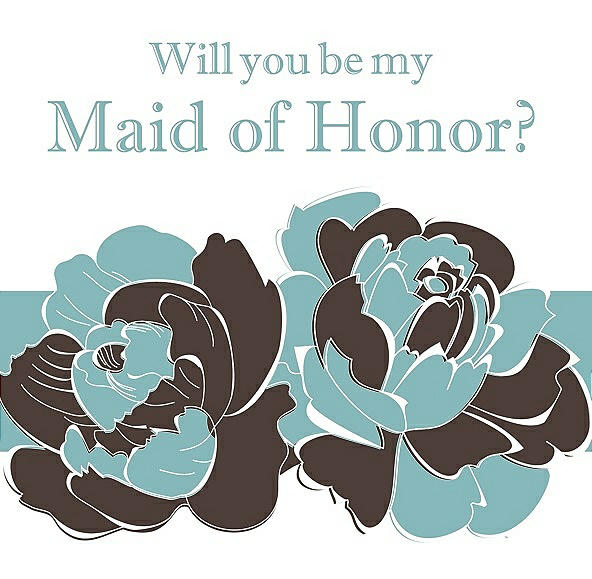 Will You Be My Maid of Honor Card - 2 Color Flowers in Chocolate & Seaside