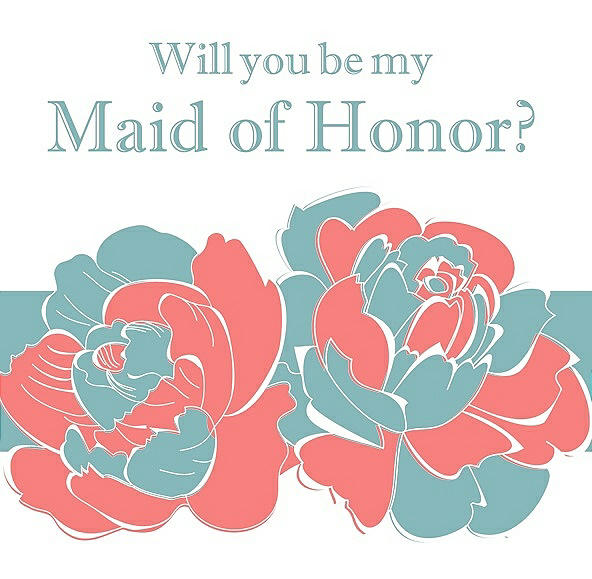 Will You Be My Maid of Honor Card - 2 Color Flowers in Ginger & Seaside