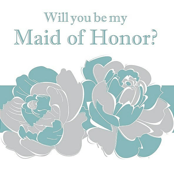 Will You Be My Maid of Honor Card - 2 Color Flowers in Sterling & Seaside